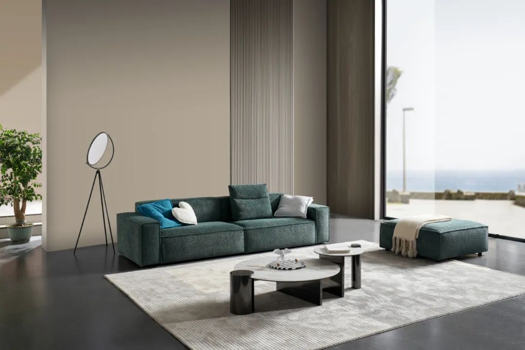 如果客厅窄小,就适合摆放一字形的三人位沙发,既提供了舒适的座位,又不会过多占用空间;空间有限也可以挑战较大的沙发,计算好长宽高,挨着转角处布置转角沙发,其实光线更好。